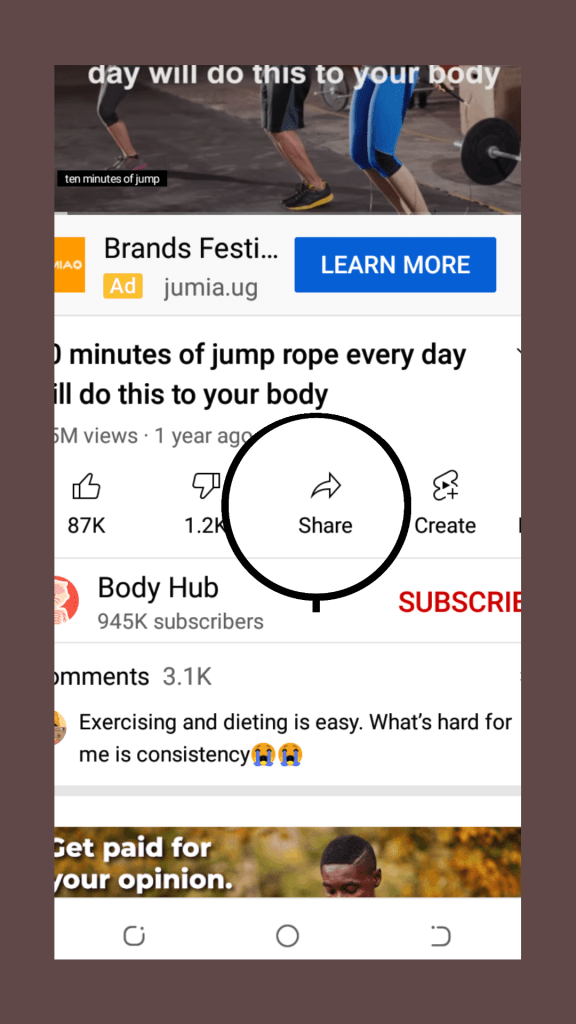 After downloading snaptube and installing the app, go to youtube and click onto the video you like. From right below that video box, choose the share icon.